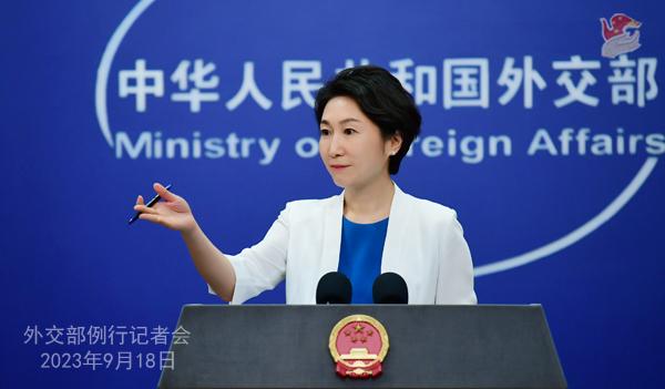 中新網(wǎng)北京9月18日電 (謝雁冰 秦亦姝)中國(guó)外交部發(fā)言人毛寧9月18日主持例行記者會(huì)。