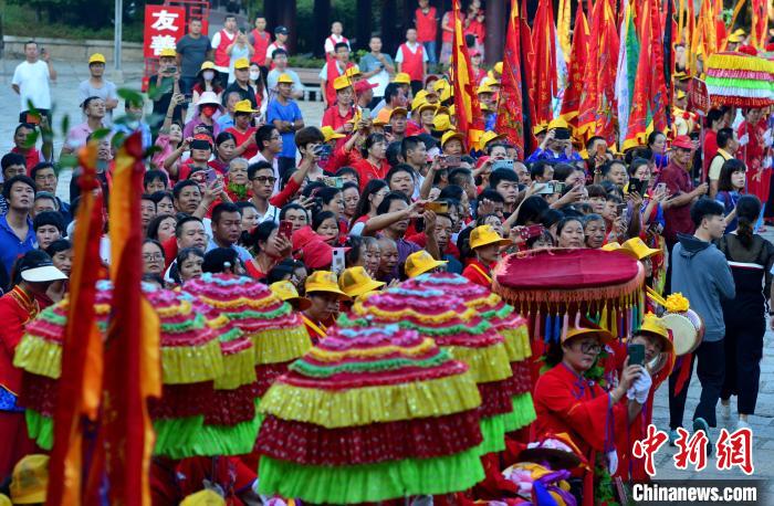 圖為9月19日,“瓣香湄洲·福佑興化”——2023年海峽兩岸同胞護(hù)駕湄洲媽祖金身巡安莆田活動(dòng)在福建省莆田市湄洲島湄洲媽祖祖廟正式啟動(dòng)。中新網(wǎng)記者 張斌 攝