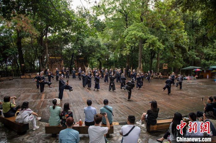 資料圖:游客在貴州省從江縣丙妹鎮(zhèn)岜沙苗寨觀看民族舞蹈表演。吳德軍 攝
