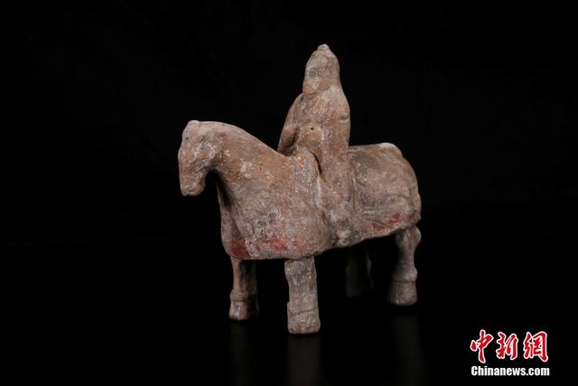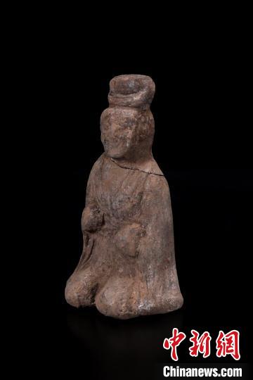 發(fā)掘表明,墓葬地表原有圍溝。圍溝呈南北向長方形,南部中間一段向南凸出,南北長147米,東西寬105米。溝內(nèi)僅一座墓葬,居于中部偏北的位置。墓葬坐北向南,為斜坡墓道帶四個天井的單室土洞墓,墓室底距現(xiàn)地表深10米,系北周時期中型墓葬。該墓被盜擾,現(xiàn)出土隨葬遺物146件(組),集中分布在墓室東南部,且以各類陶俑為主,與西魏、北周墓葬出土陶俑形制基本一致,皆為矮小的半模俑。