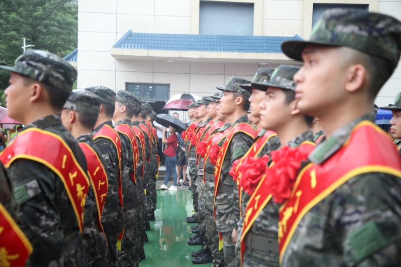 新兵們身著戎裝、胸帶紅花,精神抖擻、意氣風(fēng)發(fā),懷揣著成為一名優(yōu)秀軍人的夢想整裝待發(fā)。歡送儀式在雄偉的國歌聲中拉開序幕,新兵家長、與會人員分別送上了祝福。