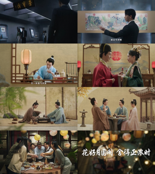 9月19日,由舍得酒與榮寶齋共創(chuàng)的視頻《舍得X榮寶齋中秋奇妙夜》正式上線,展開一場“中秋夜宴穿越之旅”。視頻以奇幻的入畫形式和現(xiàn)實中的中秋宴飲充分融合,將新婚宴、老友相聚、闔家團聚等人生濃情時刻融入其中。通過虛實結(jié)合的表現(xiàn)手法,視頻創(chuàng)造出富有詩意與想象力的視覺效果,讓消費者耳目一新,充分感知到“老酒是時間的藝術(shù)”。