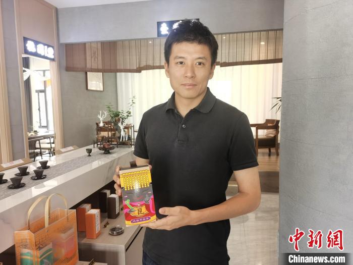 蔡曜謙展示自己設(shè)計(jì)的文創(chuàng)品?!≈行戮W(wǎng)記者 鐘升 攝