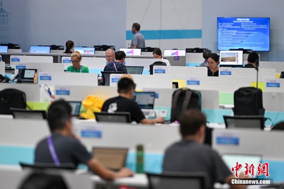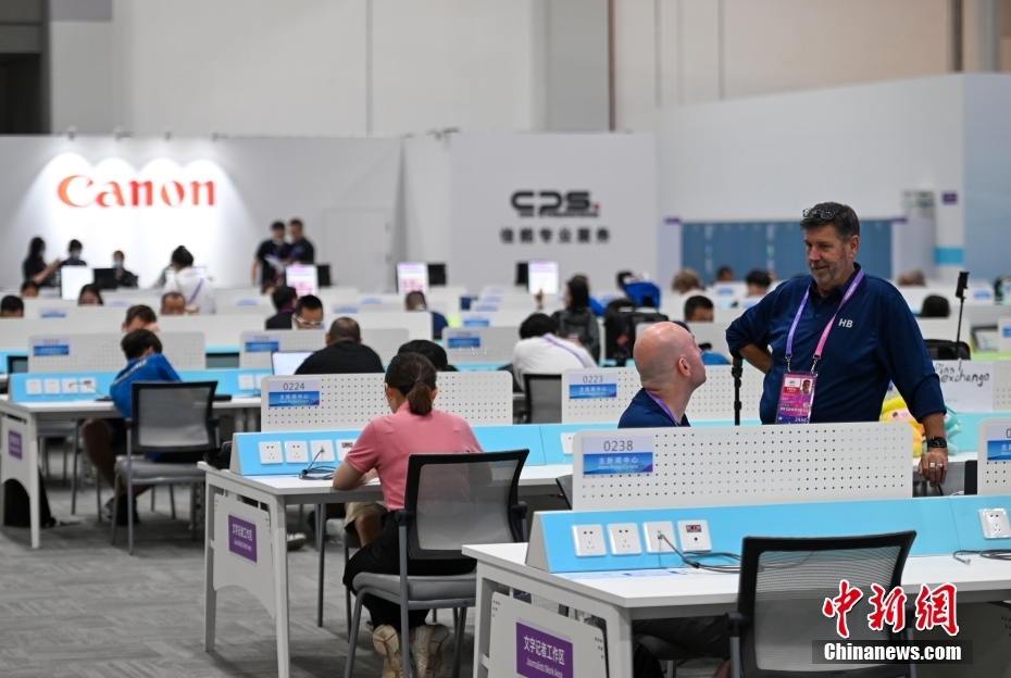 9月20日,浙江杭州,各國記者在主媒體中心開展工作,為即將迎來開幕式的杭州第19屆亞運(yùn)會(huì)作準(zhǔn)備。杭州亞運(yùn)會(huì)主媒體中心包括主新聞中心、國際廣播中心、生活服務(wù)中心等部分,賽時(shí)將24小時(shí)運(yùn)行。中新社記者 趙文宇 攝
