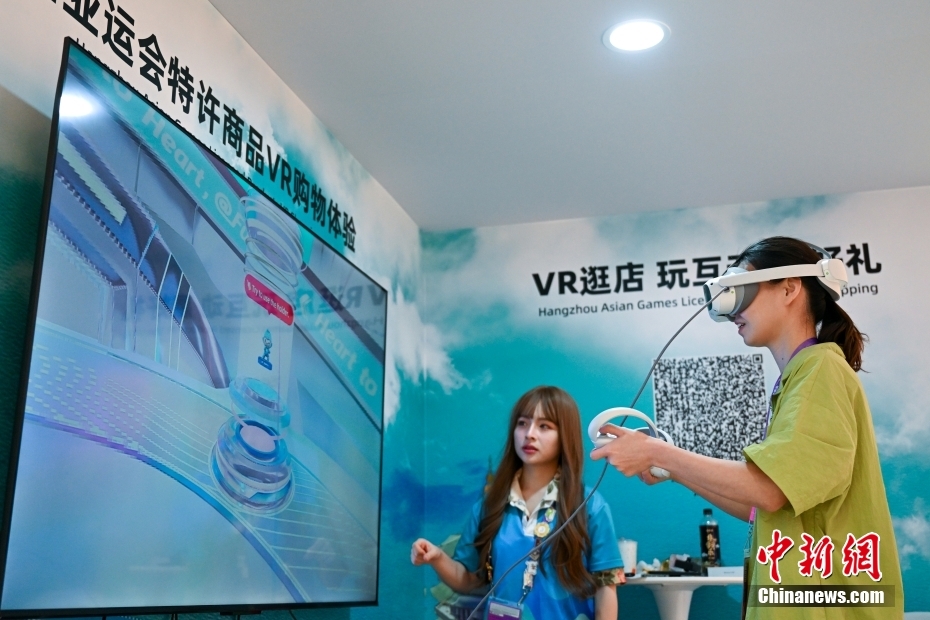 9月20日,浙江杭州,各國記者在主媒體中心開展工作,為即將迎來開幕式的杭州第19屆亞運(yùn)會(huì)作準(zhǔn)備。杭州亞運(yùn)會(huì)主媒體中心包括主新聞中心、國際廣播中心、生活服務(wù)中心等部分,賽時(shí)將24小時(shí)運(yùn)行。圖為記者在主媒體中心內(nèi)體驗(yàn)VR購物。中新社記者 趙文宇 攝