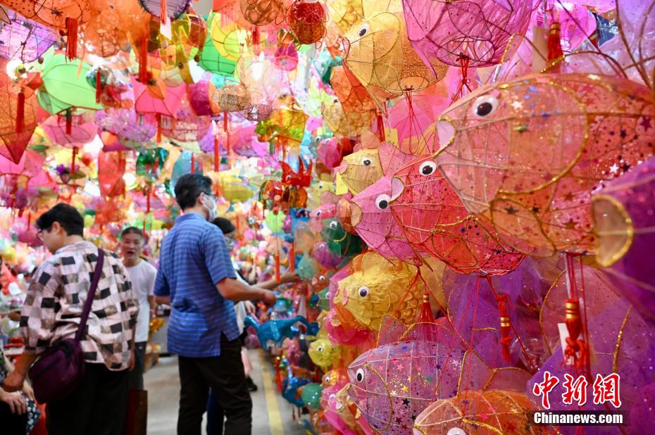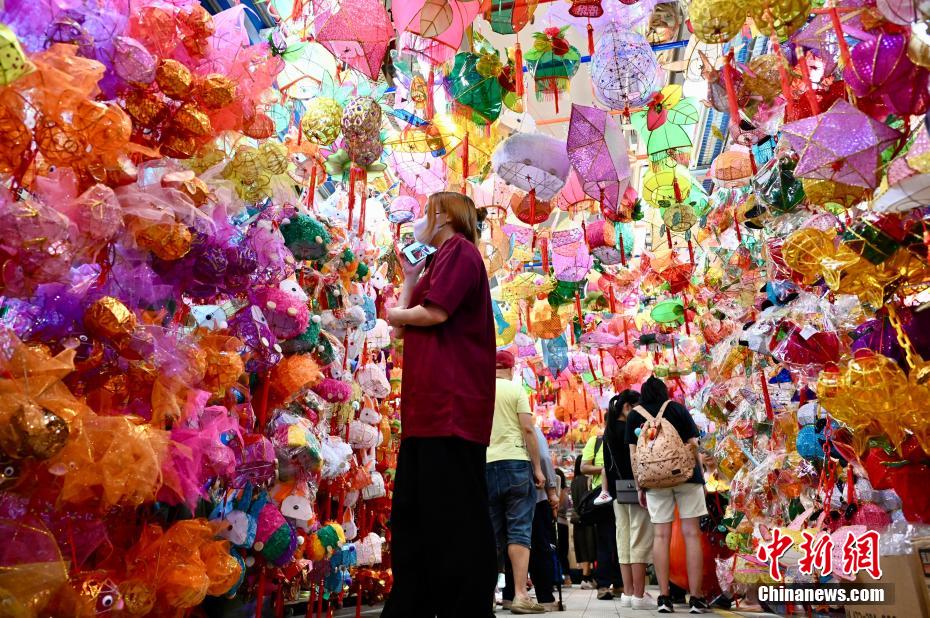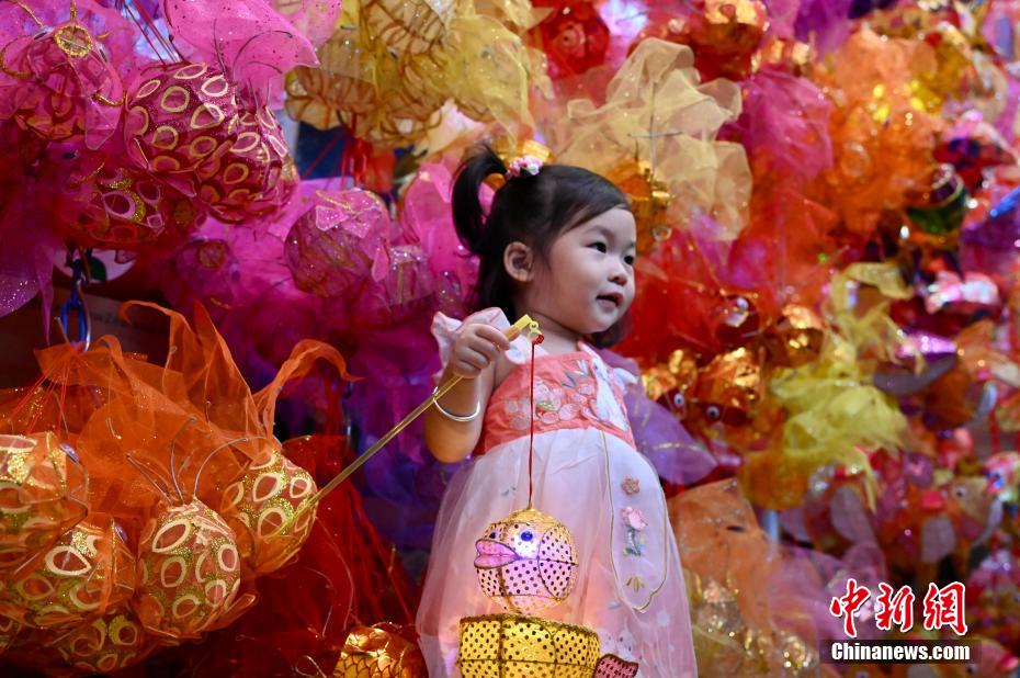 中秋佳節(jié)即將到來,9月20日,香港有市民到位于元朗大橋街市的“燈籠街”選購傳統(tǒng)燈籠?!盁艋\街”現(xiàn)場掛有近千個傳統(tǒng)手扎燈籠,吸引不少大人及兒童拍照留念。圖為小女孩穿上漢服與傳統(tǒng)燈籠合影。中新網(wǎng)記者 李志華 攝