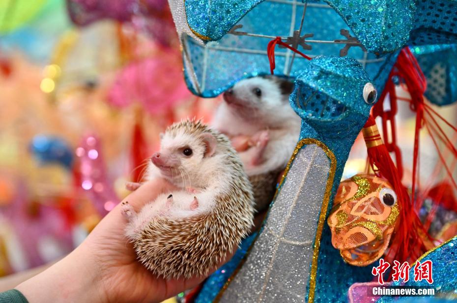 寵物刺猬與傳統(tǒng)燈籠。中新網(wǎng)記者 李志華 攝