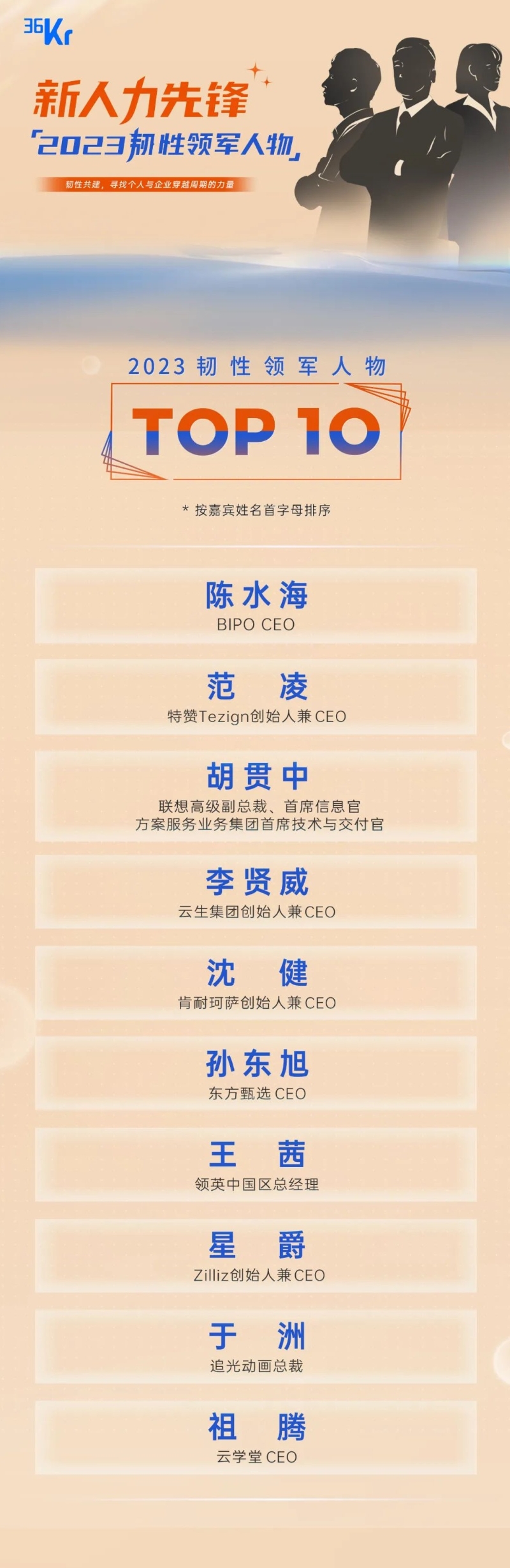 正如 36 氪在報(bào)道中所言,此次評(píng)選雖基于事實(shí)與數(shù)據(jù),卻力求打動(dòng)人心。因?yàn)楫?dāng)下企業(yè)發(fā)展所面臨的諸多挑戰(zhàn),解決之道在人心。千行百業(yè),具備韌性特質(zhì)的人物眾多,評(píng)選以新經(jīng)濟(jì)的視角切入,特別關(guān)注那些能夠帶來(lái)發(fā)展新動(dòng)能的領(lǐng)域。入選者既有全球科技行業(yè)巨頭的領(lǐng)導(dǎo)者,也有新銳創(chuàng)新企業(yè)的拓路者,還有人力資源領(lǐng)域的商業(yè)模式變革者。