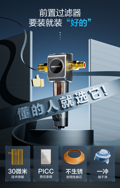 自來水水質(zhì)達(dá)標(biāo)并非衡量水質(zhì)“干凈”的標(biāo)準(zhǔn),因?yàn)榘殡S管道老化、地下水滲透等因素,容易導(dǎo)致家庭自來水水體中含有鐵銹、鉛、細(xì)沙泥土,甚至是蟲卵和微生物等眾多雜質(zhì),因此,濾水成為了健康用水的重要一環(huán)。為了確保對(duì)自來水的精確過濾,安吉爾魚鰓過濾器完成了行業(yè)濾水技術(shù)的全新升級(jí),獨(dú)創(chuàng)30μm航天鰓片科技,搭配132個(gè)仿生鰓片疊式布局的單元模塊過濾系統(tǒng),實(shí)現(xiàn)高效濾水,以前置過濾器產(chǎn)品身份,守好全家入戶健康用水的第一道關(guān)卡。