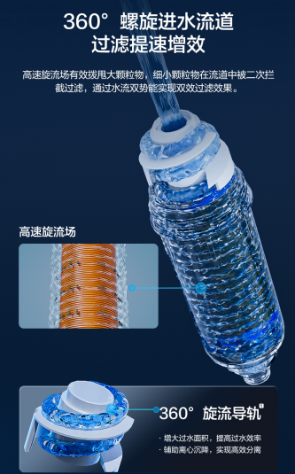 此外,安吉爾魚鰓過濾器采用了360°高效旋流分離結(jié)構(gòu)。作為安吉爾在魚鰓過濾器融入的核心專利科技,高效旋流分離所產(chǎn)生的高速旋流場能夠?qū)崿F(xiàn)雜質(zhì)二次分離的效果,同時(shí)還能做到不影響正常出水量,如此一來安吉爾魚鰓過濾器的抗污堵能力也較過往前置過濾器產(chǎn)品提升了2倍??紤]到傳統(tǒng)前置過濾器濾芯清洗難題,安吉爾魚鰓過濾器同步優(yōu)化了沖洗流程,簡單擰、旋、沖三部曲,即可完成過濾器的自清潔,每一次清潔等同換新,過濾器使用壽命更長久。
