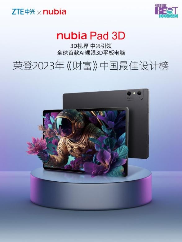 9月20日,2023年《財(cái)富》中國(guó)最佳設(shè)計(jì)榜正式揭曉,nubia Pad 3D憑借其獨(dú)特的3D光場(chǎng)顯示技術(shù)、豐富的3D場(chǎng)景應(yīng)用、多樣化的行業(yè)生態(tài)伙伴合作方案,榮登榜單。
