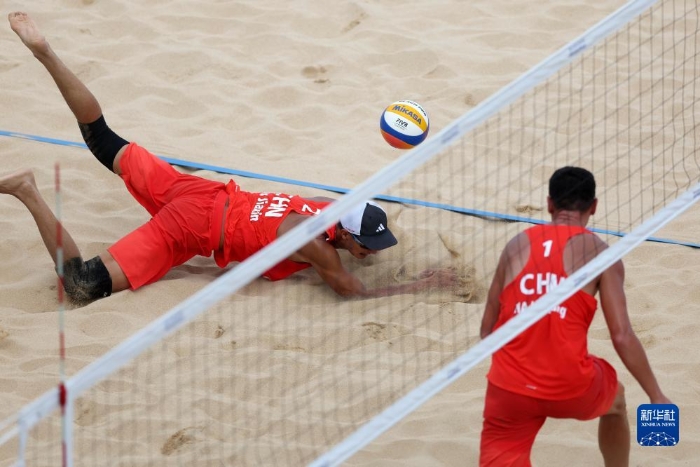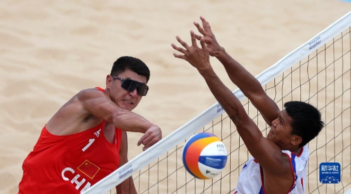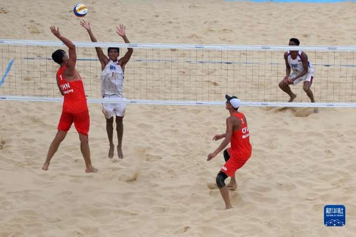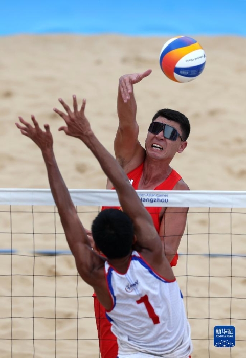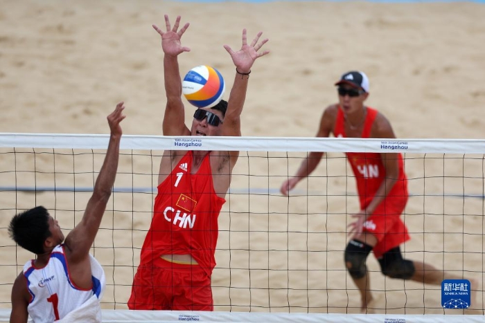 當(dāng)日,在浙江寧波進(jìn)行的杭州亞運(yùn)會(huì)沙灘排球男子小組賽A組比賽中,中國(guó)組合阿卜杜哈力克江·穆太力普/吳佳欣以2比1戰(zhàn)勝菲律賓組合詹姆斯·布伊特拉戈/祖德·加西亞。