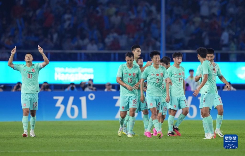 當日,在杭州亞運會男子足球小組賽A組比賽中,中國隊以4比0戰(zhàn)勝緬甸隊。
