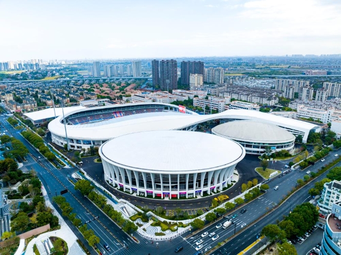 臨平區(qū)作為杭州亞運(yùn)會(huì)、亞(殘)運(yùn)會(huì)的重要承辦城區(qū)之一,承接了空手道、足球、排球3個(gè)亞運(yùn)項(xiàng)目和坐式排球、盲人門球兩個(gè)亞殘運(yùn)會(huì)項(xiàng)目。從高空俯瞰,臨平體育中心在外觀塑造上,采用了“絲綢之路”的設(shè)計(jì)理念,通過交互式的手法,以綜合訓(xùn)練館外形靈動(dòng)的曲線為“絲路”起始,串聯(lián)起杭州亞運(yùn)會(huì)足球小組比賽場(chǎng),同時(shí)在體育館、體育場(chǎng)、游泳館和綜合訓(xùn)練館建連廊平臺(tái),將四個(gè)場(chǎng)館連成一體,為觀眾進(jìn)出場(chǎng)館提供便利。