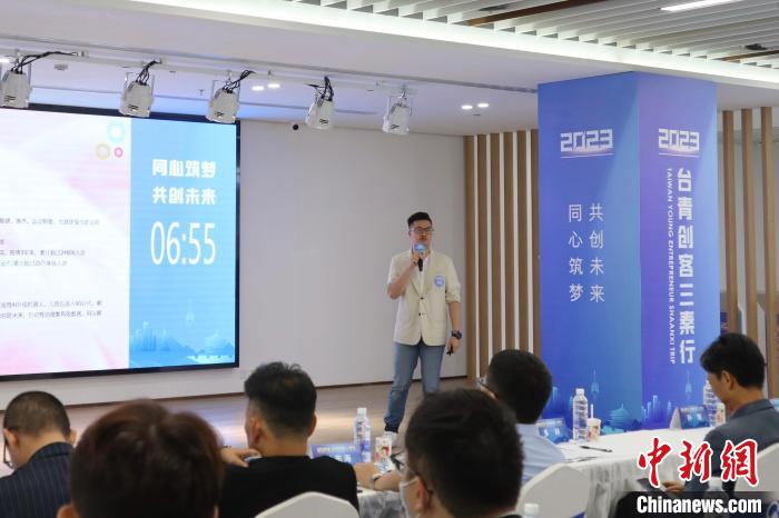 圖為21日,臺(tái)灣青年錢志璿在路演活動(dòng)現(xiàn)場(chǎng)宣講?!±钜画[ 攝
