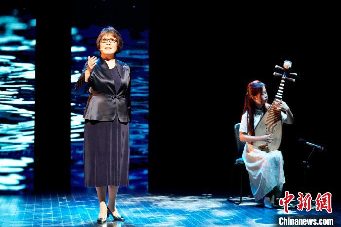 方舟認(rèn)為,在舞臺(tái)上的朗誦,完全不同于在電臺(tái)話筒前的朗誦。她與一位琵琶演奏家完成白居易的《琵琶行》。上海戲劇學(xué)院供圖