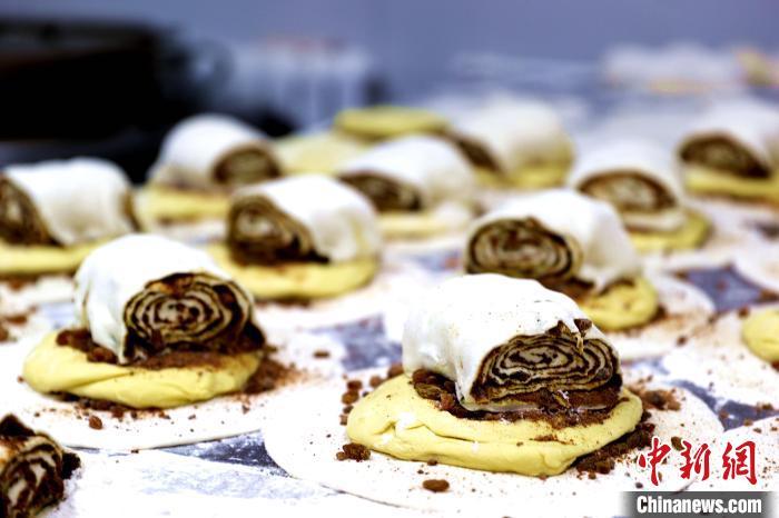 9月21日,在中秋佳節(jié)來臨之際,青海很多民眾制作月餅,來迎接這一傳統(tǒng)節(jié)日。青海傳統(tǒng)月餅制作時,將面粉發(fā)酵后,揉好搟開,上面涂上一層清油,撒上色香兼?zhèn)涞南愣狗?、紅曲、姜黃等,用手攤勻,揉成柱狀,團成面團。青海傳統(tǒng)月餅出爐后五色俱全,芳香可口。(中國新聞網(wǎng))