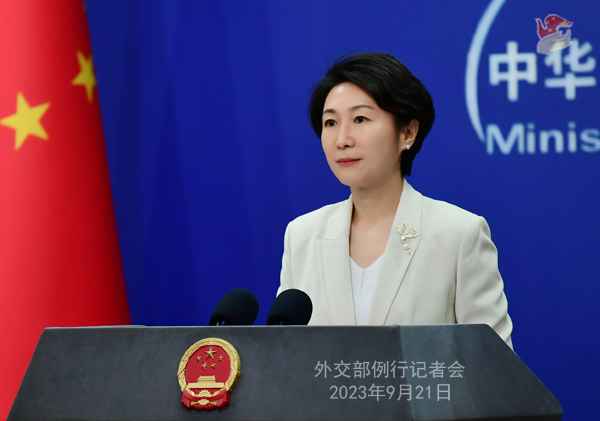 中新網(wǎng)北京9月21日電(謝雁冰)中國(guó)外交部發(fā)言人毛寧9月21日主持例行記者會(huì)。