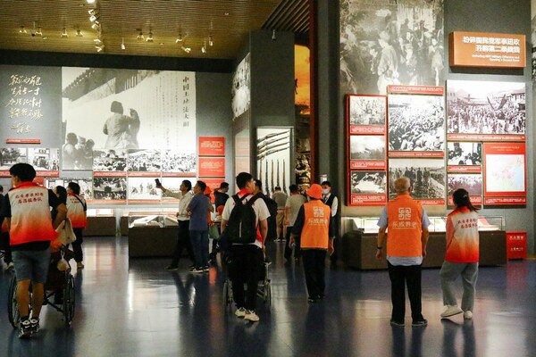 恭和家園老人與北京青年政治學(xué)院智慧健康養(yǎng)老服務(wù)與管理專業(yè)的大學(xué)生志愿者共同參觀中國共產(chǎn)黨歷史展覽館