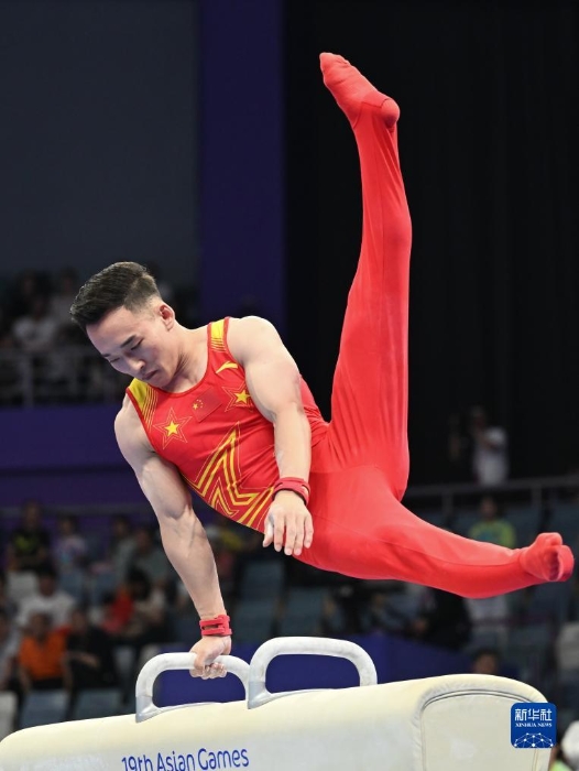 當(dāng)日,在杭州亞運(yùn)會(huì)競(jìng)技體操男子團(tuán)體決賽中,中國(guó)隊(duì)以總得分262.025的成績(jī)奪得冠軍。