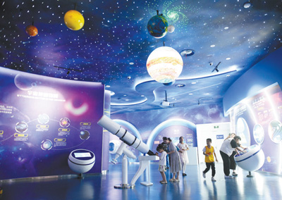 安徽省阜陽市科技館內(nèi),天文科普展覽吸引不少市民前來參觀體驗。