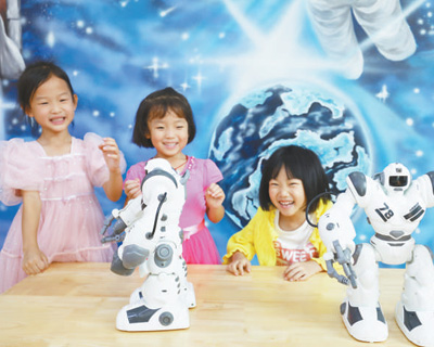 河北省唐山市豐潤區(qū),幼兒園小朋友與智能機器人互動。