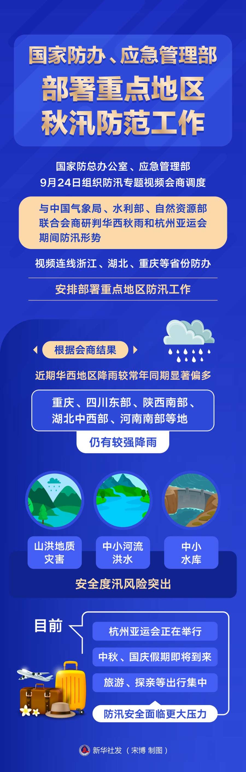 根據(jù)會商結(jié)果,近期華西地區(qū)降雨較常年同期顯著偏多,重慶、四川東部、陜西南部、湖北中西部、河南南部等地仍有較強降雨,山洪地質(zhì)災(zāi)害、中小河流洪水、中小水庫安全度汛風險突出。目前,杭州亞運會正在舉行,中秋、國慶假期即將到來,旅游、探親等出行集中,防汛安全面臨更大壓力。