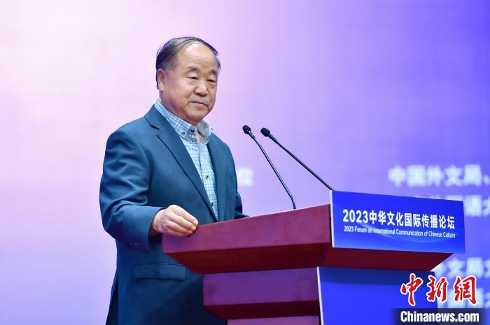 9月22日,在2023中華文化國際傳播論壇上,諾貝爾文學(xué)獎獲得者莫言作大會演講。(中國外文局文化傳播中心供圖)