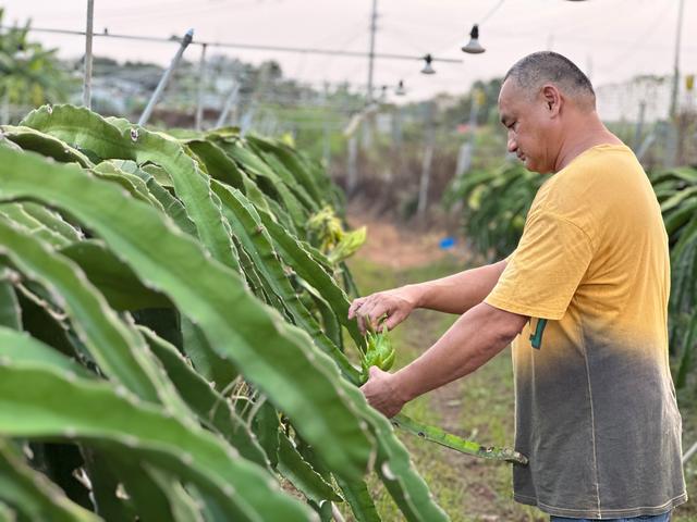 相同的氣候、相近的生活習(xí)俗,讓曾鈞毅很快就融入當(dāng)?shù)厣?,一心耕耘腳下的土地。他不僅帶來(lái)了臺(tái)灣火龍果種苗,還利用自己的經(jīng)驗(yàn)技術(shù),幫助村民改良土壤,提高火龍果產(chǎn)量。