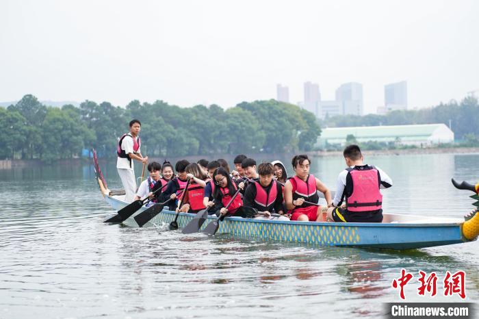 兩岸青年體驗劃龍舟項目。 武漢體育學(xué)院供圖