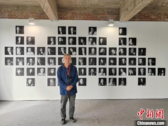 9月20日,美國(guó)攝影師吉羅姆·德·帕林吉在其作品前。中新社記者 高雨晴 攝
