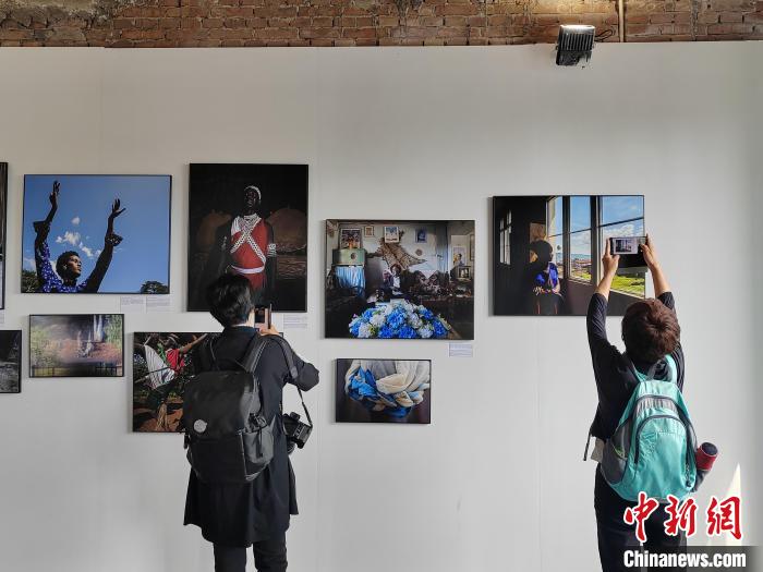 9月21日,俄羅斯策展人契梅瑞娃(右)與攝影師聊天。中新社記者 高雨晴 攝