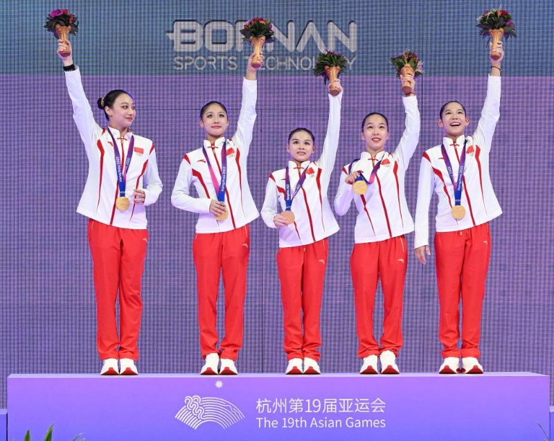 體操賽場決出女子團(tuán)體金牌,由張欣怡、左彤、章瑾、虞琳敏、唐茜靖組成的中國隊(duì)雖然不是最強(qiáng)陣容,但仍表現(xiàn)出高人一籌的實(shí)力,以161.896分的成績獲得該項(xiàng)目的亞運(yùn)會(huì)13連冠。