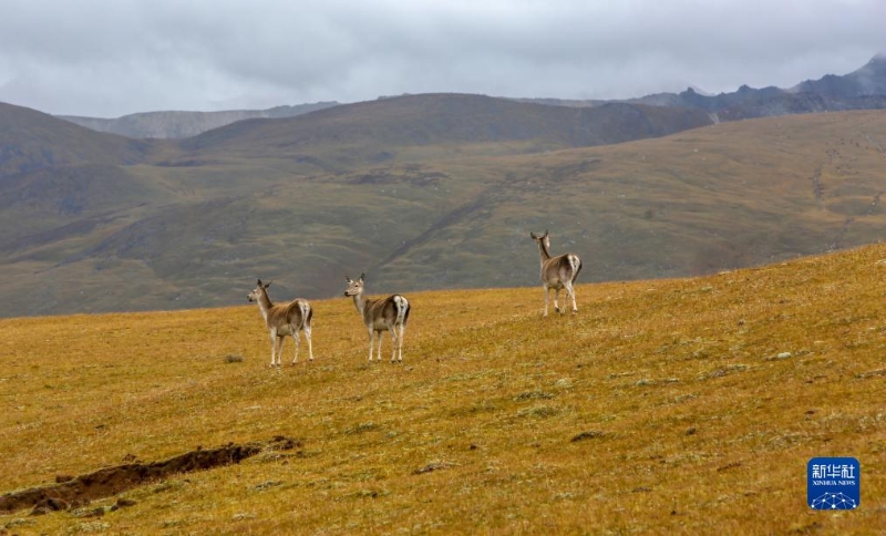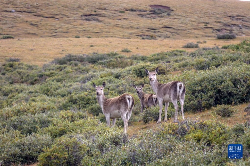 9月24日,幾只西藏馬鹿出現(xiàn)在位于西藏自治區(qū)山南市桑日縣的貢德林草原上。