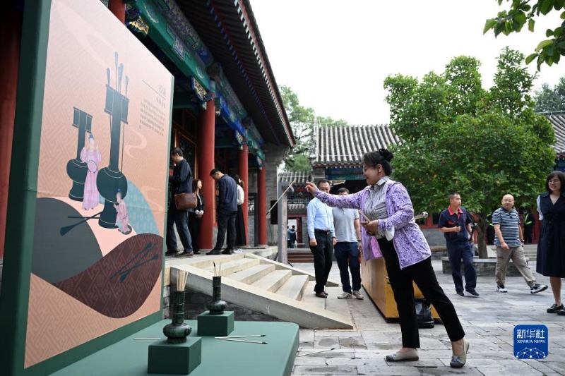 9月25日,觀眾體驗(yàn)投壺。