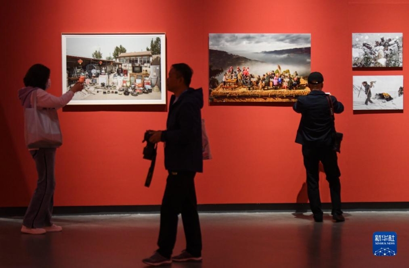 9月26日,在新疆美術(shù)館,參觀者在觀看展出的攝影作品。
