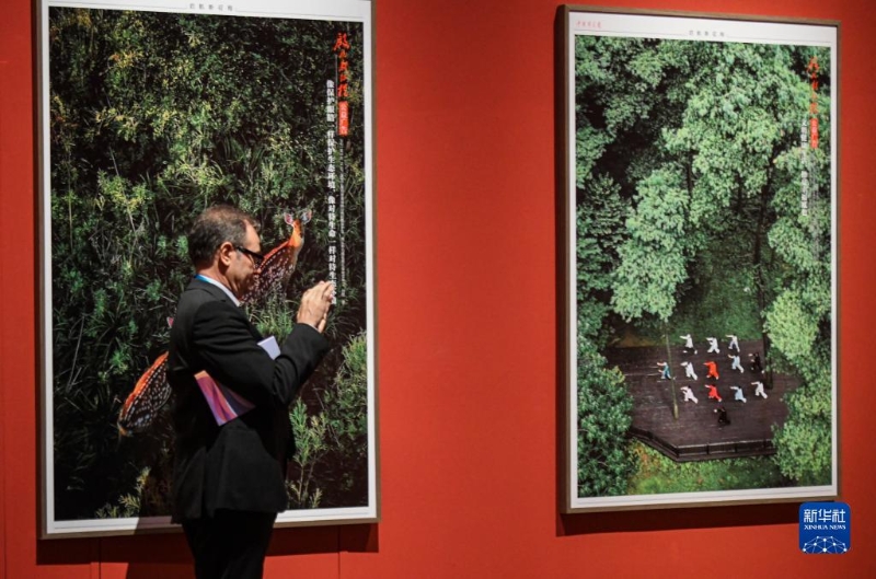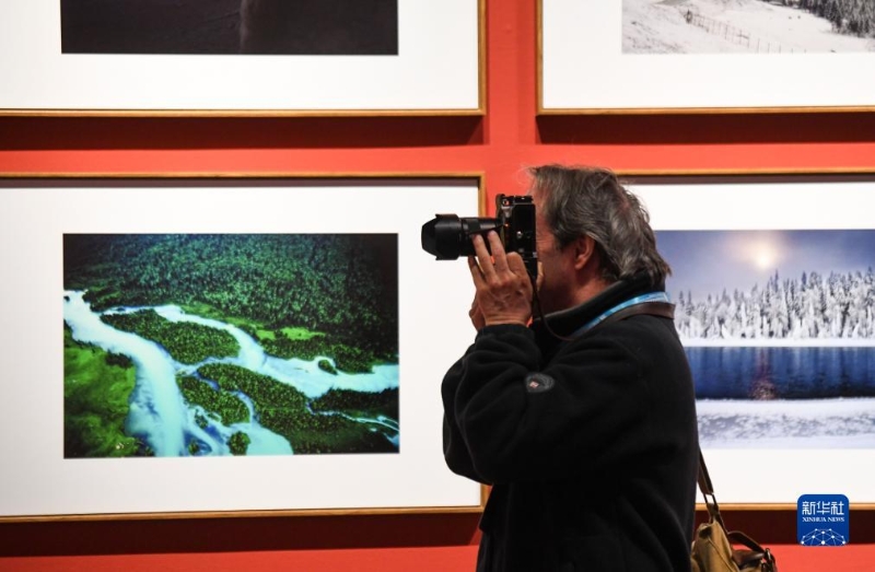 9月26日,在新疆美術(shù)館,參觀者在拍攝展出的攝影作品。