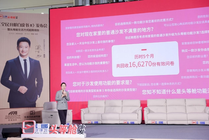 2023年3 月,芝華仕發(fā)布了全民升艙白皮書第一冊《人居生活的進化》。以“全民升艙”為主題,芝華仕所提出的“頭等艙生活理念”引起了行業(yè)和消費者廣泛談?wù)?。此后,芝華仕聯(lián)合life+生活方式研究院共同開展進階調(diào)研,并與歐睿咨詢合作發(fā)布了《全民升艙功能沙發(fā)您選對了嗎?》調(diào)研問卷,從2023年4月-8月31日歷時5個月共覆蓋4.5億樣本定向回收16.6270萬份問卷。