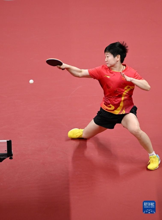 9月26日,中國隊選手孫穎莎在比賽中回球。她以3比1戰(zhàn)勝日本隊選手早田希娜。