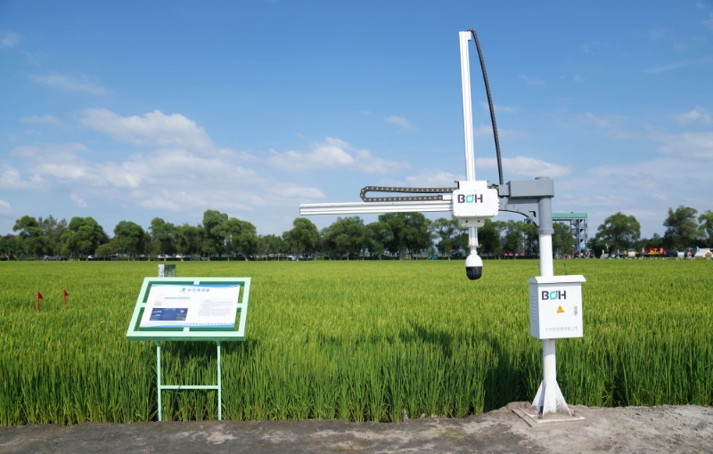 這是2023年8月10日在北大荒集團(tuán)閆家崗農(nóng)場(chǎng)有限公司農(nóng)業(yè)現(xiàn)代化示范區(qū)拍攝的利用數(shù)字技術(shù)的葉齡診斷儀。新華社記者 王建威 攝