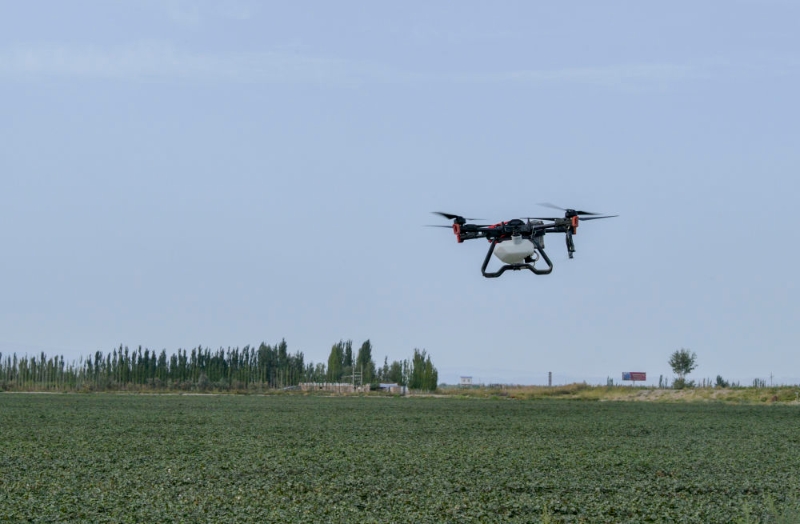 這是2023年9月18日在新疆巴音郭楞蒙古自治州尉犁縣“超級(jí)棉田”拍攝的農(nóng)業(yè)無(wú)人機(jī)。新華社記者 郝建偉 攝