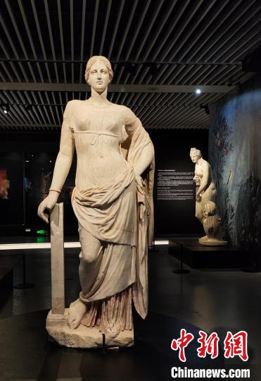 展出的127件/套珍貴館藏文物包括雕塑、壁畫,陶瓷、青銅、玻璃制品等多種類型,重點(diǎn)展品包括點(diǎn)塑《海中的阿佛洛狄忒》,塑造的是希臘神話中代表愛和美的女神從海中誕生時(shí)的燦爛之姿。女神身穿古希臘式的短袍,衣服緊貼在身上,表明她剛剛浮出水面。一件較厚的長袍遮住了她的下半身。她肌膚勝雪、面容恬靜,以優(yōu)雅的姿態(tài)沐浴出水,這一經(jīng)典的畫面影響了整個(gè)古代和現(xiàn)代的西方藝術(shù)。