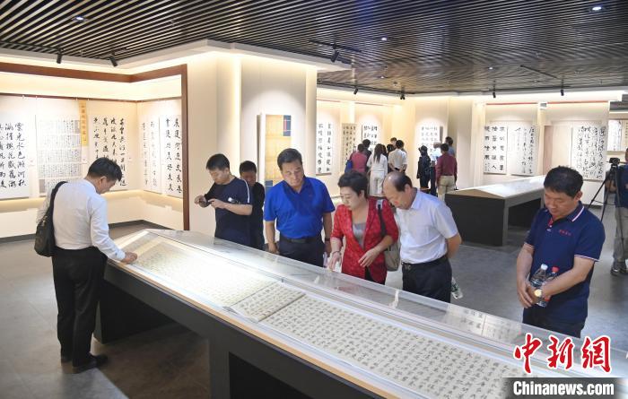 圖為9月26日,書法愛好者參觀中國大運河沿岸九城市書法篆刻作品聯(lián)展。劉向攝
