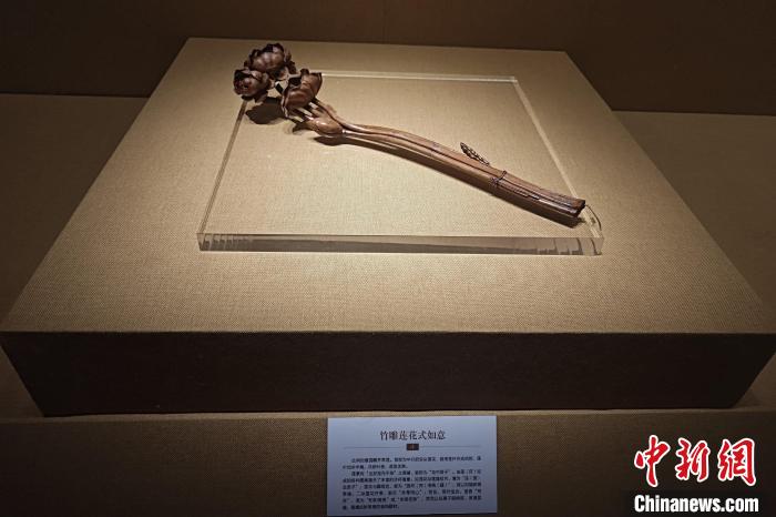 百余件如意與獅子題材文物亮相福建石獅,圖為竹雕蓮花式如意。吳冠標 攝