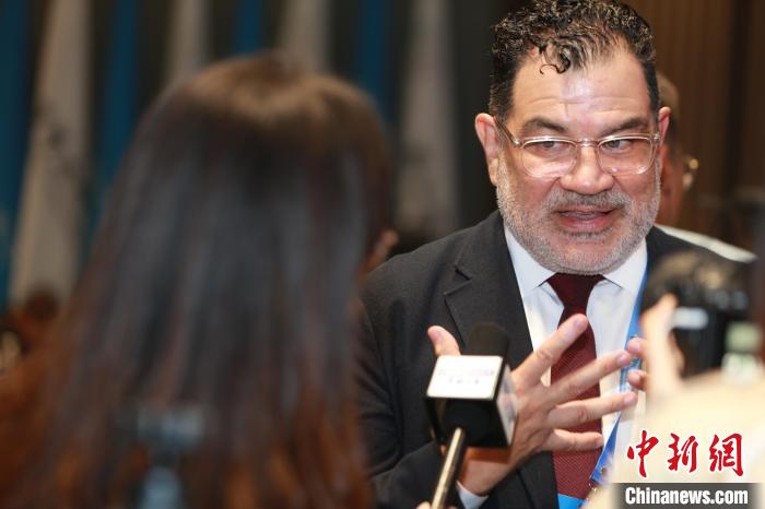 圖為26日國(guó)際博物館協(xié)會(huì)咨詢理事會(huì)主席安東尼奧·羅德里奎斯在接受記者采訪。中新社記者 梁犇 攝