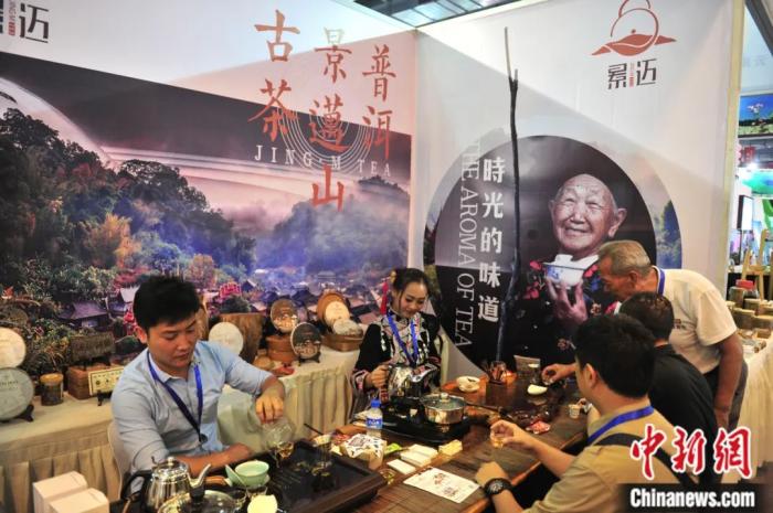 云南昆明,來自普洱景邁山的茶企參加第四屆中國-南亞博覽會。劉冉陽 攝