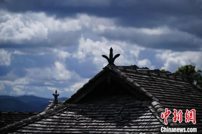 翁基古寨家家戶戶屋檐上都有象征茶樹“一芽兩葉”的圖騰。劉冉陽 攝