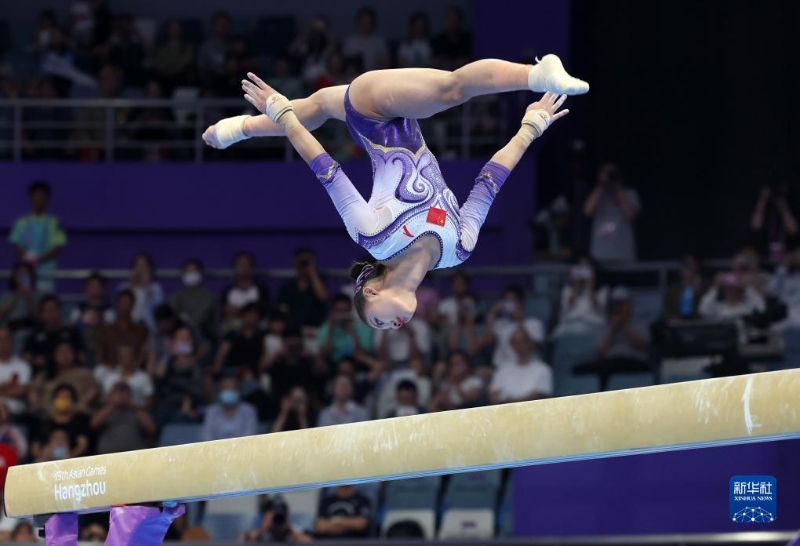 9月27日,左彤在平衡木項目比賽中。