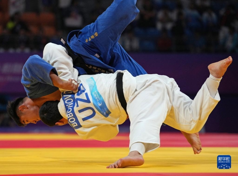 9月27日,中國選手布和畢力格(上)對陣烏茲別克斯坦選手達夫拉特·博博諾夫。