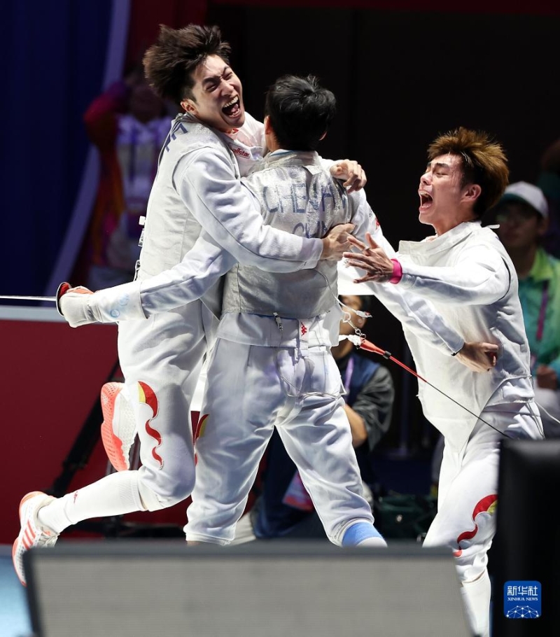當日,在杭州亞運會擊劍項目男子團體花劍半決賽中,中國隊以45比44戰(zhàn)勝日本隊,晉級決賽。